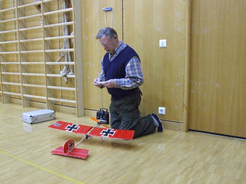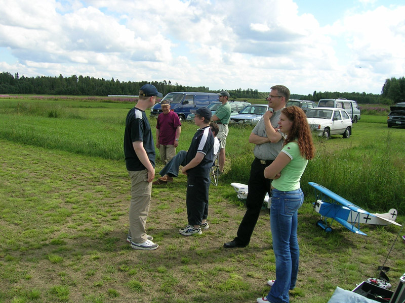 ![]() Pekka ja Mikko Ruohomäki valmistelevat Kolibria lennolle. He ovat saaneet Kolibrin lentämään yli 5 min Runeberg-salissa. Pekka och Mikko Ruohomäki förbereder sin Kolibri för en flygning. Dom har lyckats få den att hållas uppe över 5 min i Runebergsalen. |