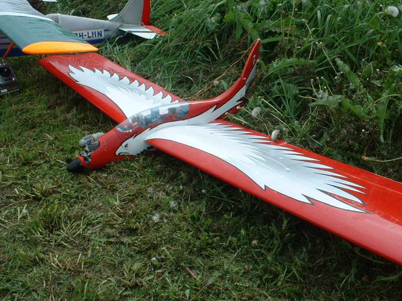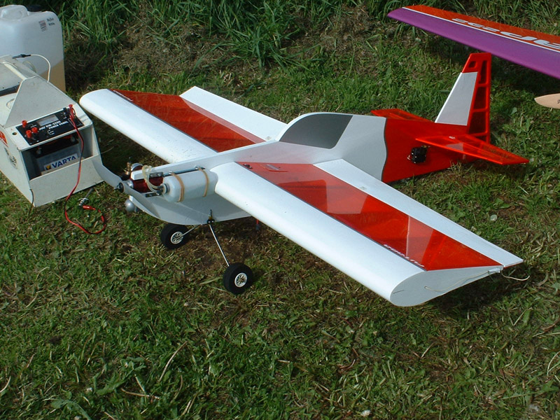 ![]() Paulis Mark One är byggd enligt förstorade tyska ritningar och modellen väger under 3 kg. Motorn är en RCV 52CD med roterande cylinder. En videokamera i modellen sände bilder till en monitor på marken. |