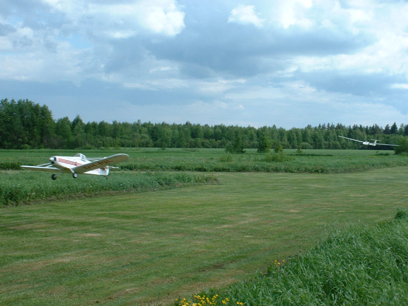 Juhani och Kimmo utförde flera bogseringar. Fast gräsfältet förorsakade litet extra motstånd vid starten, orkade Pawnee dra ASW till höjden utan svårigheter. | ||