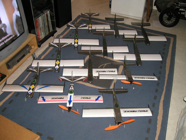'Piku Nikke' -elmodell Niklas Kaarla Det finns många lättbyggda nästan färdiga (ARF) modellflygplan på marknaden. Dessa får man snabbt upp i luften, men de är inte speciellt förmånliga. Det svider nog om man krashar en sådan. Traditionella byggsatser är billigare, men är ganska arbetskrävande. Med detta i åtanke, bestämde jag mig för att konstruera ett flygplan som skulle vara såväl snabbt att bygga som förmånligt. Så föddes Piku Nikke. Piku Nikkes vinge är en sk. basvinge utvecklad av Suomen Lennokki. Vingen är av styrox (frigolit), den är 60 cm lång och kostar 3 . Kroppen samt stabilisatorerna är av Depron-isoleringsskiva. |